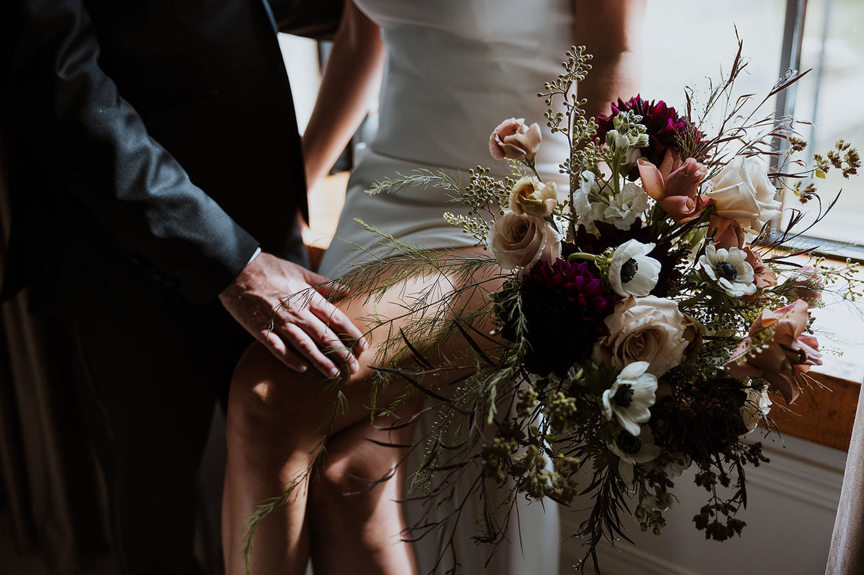 Nothing says fall wedding quite like a dramatic color palette, and designs that are full of wildly textural flowers and foliage. We harvested burgundy dahlias, light brown lisianthus, and tons of textural foliage from our late season flower beds to create these floral works of art. The stunning blooms just scream drama and romance, and are perfectly at home at both the Hatchery and the Freighthouse in downtown La Crosse.